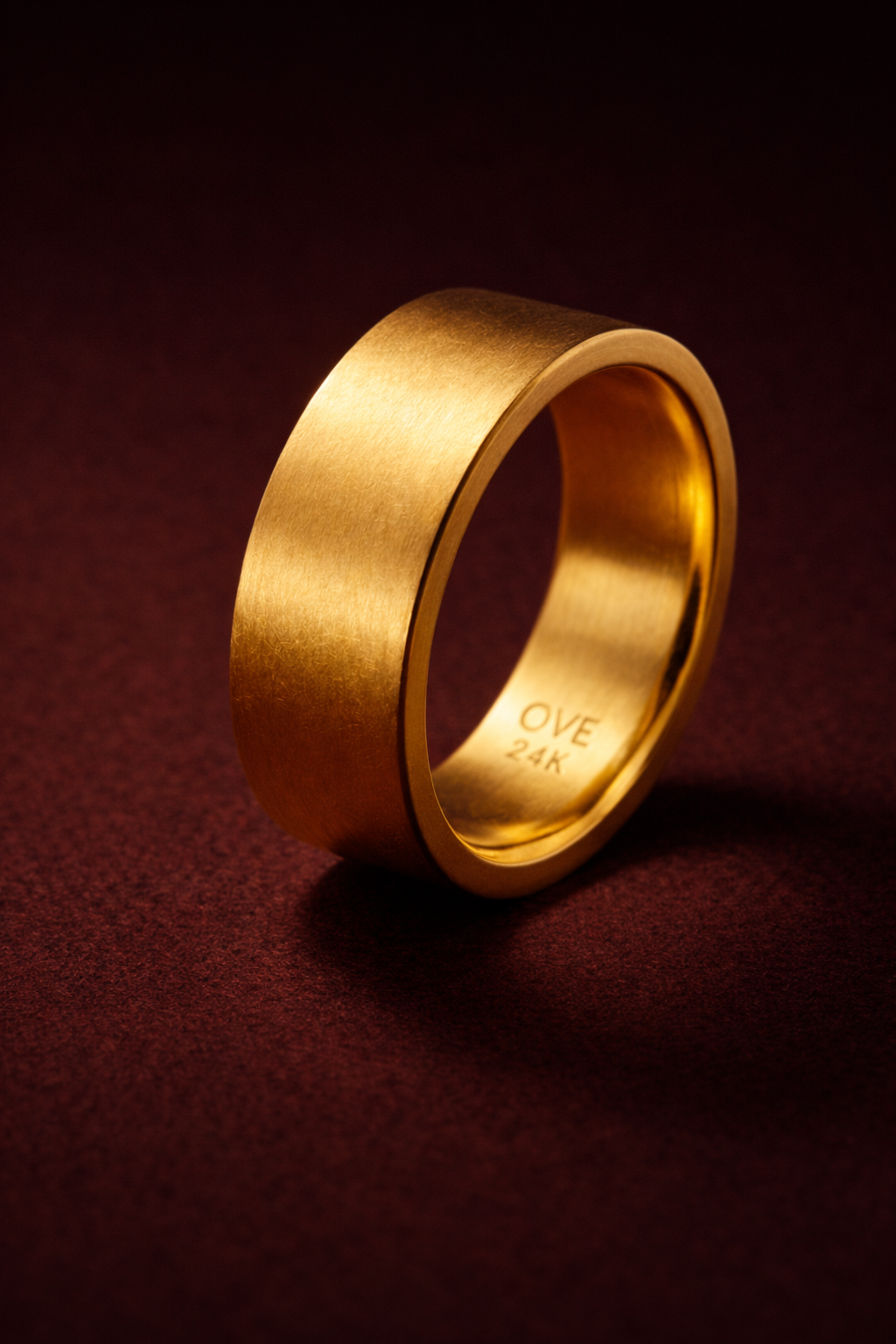Ove defines worth through purity, permanence, and craftsmanship. Each piece is sculpted in solid 24k gold and valued by its intrinsic composition — the gold it holds and the artistry it embodies.